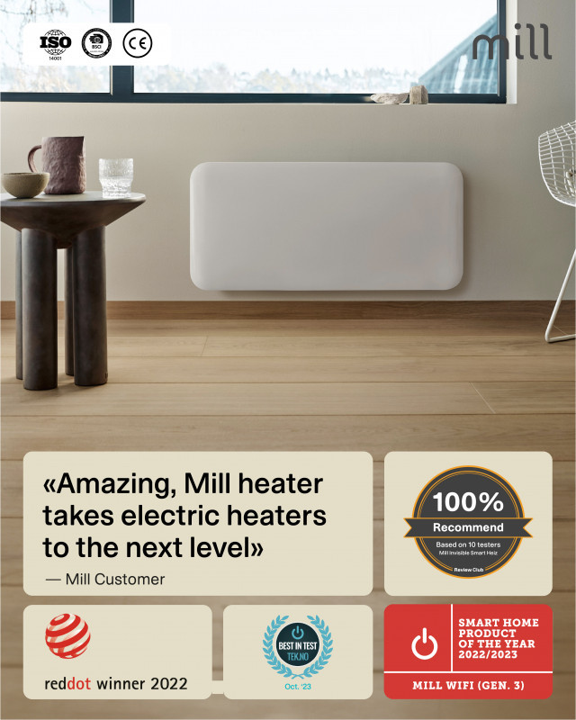 Mill Invisible Smart WiFi Heater | PA700WIFI4 | Panel Heater | 700 W | Suitable for rooms up to 9-12 m² | White | IPX4