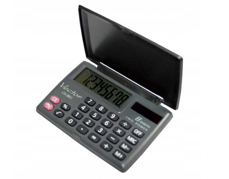 Vector KAV CH-861 kišeninis skaičiuotuvas, 8 skaitmenys, 87 x 58 mm, juodas