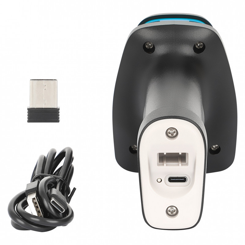 "Manhattan Wireless 2D Handheld Barcode Scanner, 250mm Scan Depth, up to 80m effective range (line of sight), Max Ambient Light 100,000 lux (sunlight), Black, Charging cable (USB-A to USB-C into device) 1m included, Three Year Warranty. Type: Handheld bar code reader, Scanner type: 1D/2D, Sensor type: LED. Connectivity technology: Wireless, Standard interfaces: RF Wireless, Wireless range: 80 m. Product colour: Black, Housing material: Acrylonitrile butadiene styrene (ABS), International Protection (IP) code: IP52. Power source type: Battery, Charging port type: USB Type-C, Battery capacity: 2000 mAh. Weight: 200 g, Width: 67 mm, Depth: 87 mm"\n"Rugged Cordless 1D / 2D USB Barcode Scanner that helps you improve Productivity in Retail, Hospitality, Warehousing, and Harsh Environments
