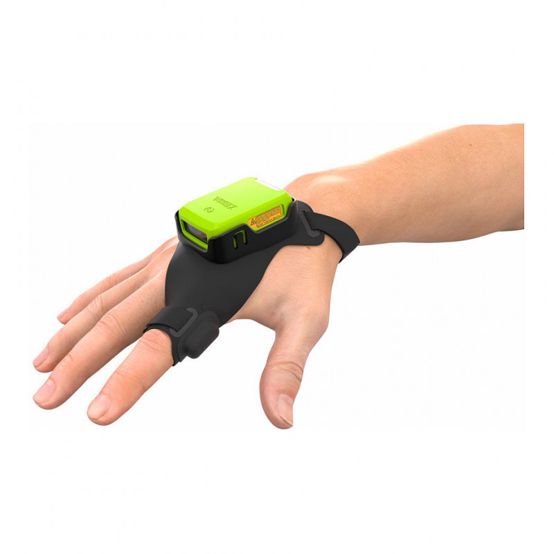 "Zebra RS2100. Type: Wearable bar code reader, Scanner type: 2D, Sensor type: Laser. Connectivity technology: Wireless, Standard interfaces: Bluetooth. Product colour: Green. Power source type: Battery, Battery technology: Lithium-Ion (Li-Ion), Battery type: Built-in battery. Weight: 31 g, Width: 35.5 mm, Depth: 52 mm"\n"Hands-free mobility can give your workflows an instant productivity boost, but you need a solution that your workers want to wear — and fits your budget. Introducing the RS2100 Wearable Scanner — the smallest enterprise wearable scanner on the market. An innovative back of hand design offers new levels of worker comfort and dexterity. The unique mount leaves the palm completely unobstructed, providing complete freedom to handle items. The very low profile enables easy picking in tight spaces. There’s nothing complicated about this wearable scanner: it’s simple to purchase, deploy, wear and manage. An optional Device Tracker license makes it easy to find a missing RS2100 scanner. Get the edge you need to compete in today’s economy with the RS2100 Wearable Scanner — a new level of wearable comfort, productivity and simplicity.