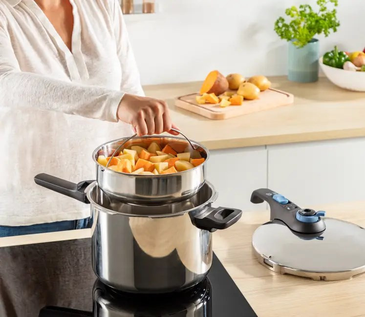 Slėginė viryklė TEFAL SECURE TRENDY 6L + nerūdijančio plieno krepšys