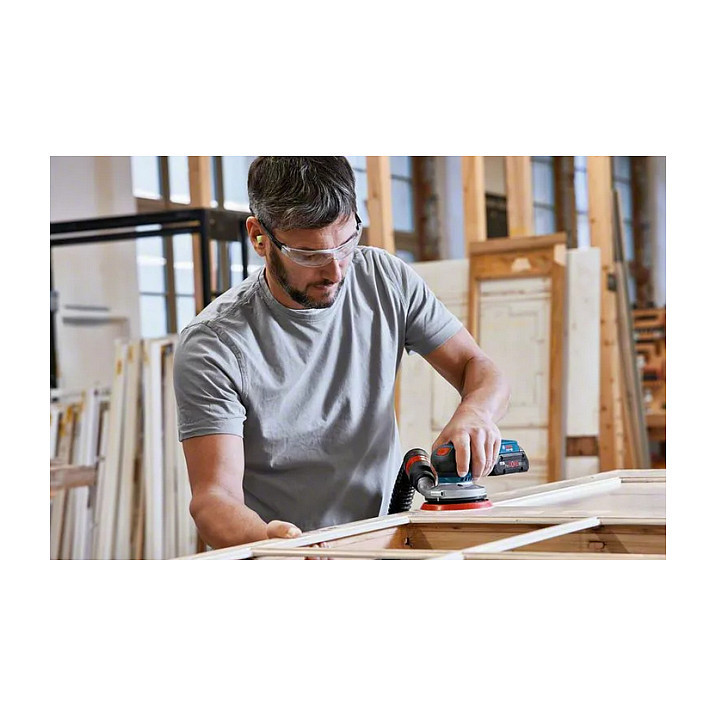 The GEX 18V-125 Professional random orbit sander provides users with optimal tool control, specifically, when working on larger surfaces. The random orbit sander´s outstanding balance close to the workpiece as well as the supreme ergonomics of its palm rest and grip offer optimal tool control. Fast work progress and a longer tool lifetime are ensured by its brushless motor and Bosch’s Professional 18V system. The GEX 18V-125 Professional can be easily and intuitively operated.