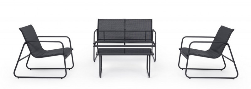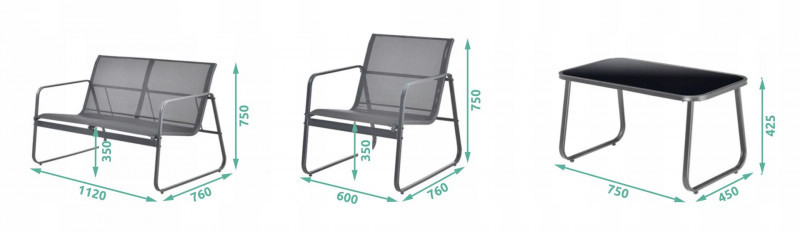 Extralink BLACK FOREST ZESTAW MEBLI OGRODOWYCH TEKSTYLEN DWA KRZESLA + LEZANKA + STOLIK ROZKLADANY CZARNY L-0358 lauko baldų komplektas