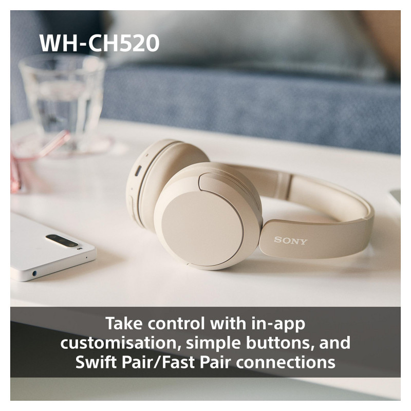 "Sony WHCH520Y.CE7. Product type: Headset. Connectivity technology: Wireless, Bluetooth. Recommended usage: Calls/Music. Headphone frequency: 20 - 20000 Hz. Wireless range: 10 m. Cable length: 1.2 m. Weight: 147 g. Product colour: Yellow"\n"Experience the Sony WH-CH520 Wireless Headphones – Superb sound for every song, in a style that suits you. Choose from Black, White, Blue, Beige, Yellow, or Pink.
