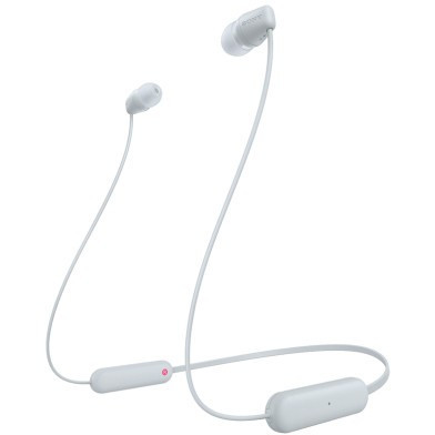 "Sony WI-C100. Product type: Headset. Connectivity technology: Wireless, Bluetooth. Recommended usage: Calls/Music. Headphone frequency: 20 - 20000 Hz. Wireless range: 10 m. Weight: 20 g. Product colour: White"\n"Packed with features