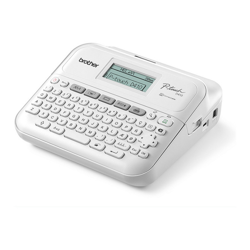 "Brother PT-D410VP. Print technology: ZINK (Zero-Ink), Maximum resolution: 180 x 180 DPI. Connectivity technology: Wired, USB port. Keyboard layout: QWERTY. Tape type: TZe. Product colour: White"\n