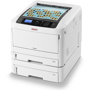 "OKI C824dn. Print technology: LED, Colour. Maximum duty cycle: 75000 pages per month. Maximum resolution: 1200 x 600 DPI. Maximum ISO A-series paper size: A3. Print speed (black, normal quality, A4/US Letter): 26 ppm. Network ready. Product colour: Black, White"\n"Save time and cost without compromising on quality or performance with the compact and affordable C824 A3 colour printer. The quick warm-up, energy and time-saving fast fusing technology, increases efficiency. The C824 is the ideal choice for high-quality colour printing on a budget.