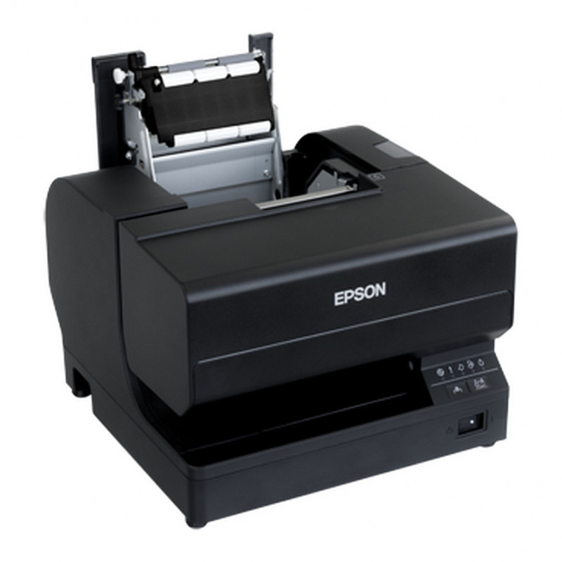 "Epson TM-J7700(301) W/O MICR, BLACK, INC PSU, EU. Print technology: Inkjet, Type: POS printer, Print speed: 98 mm/sec. Supported paper width: 58 - 83 mm, Media thickness: 0.06 - 0.09 mm, Maximum paper size (slip): 230 x 297 mm. Connectivity technology: Wired, USB connector: USB Type-B. Ethernet LAN data rates: 10,100 Mbit/s. Sound pressure level (printing): 55 dB, Mean time between failures (MTBF): 180000 h, Autocutter durability: 1.5 million cuts"\n"Faster, better inkjet technology