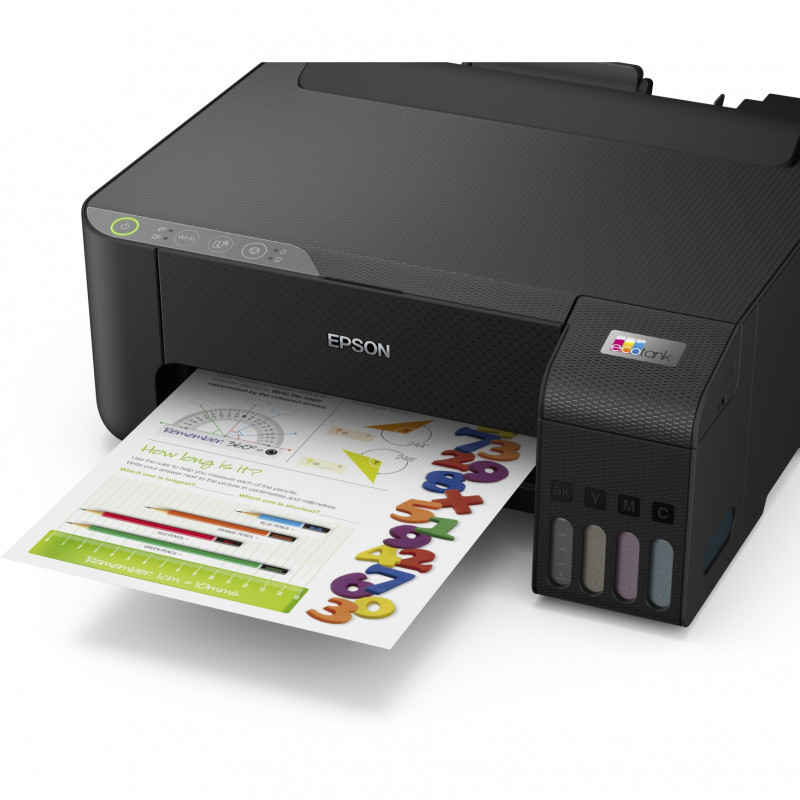 "Epson EcoTank ET-1810. Colour, Number of print cartridges: 4. Maximum resolution: 5760 x 1440 DPI. Maximum ISO A-series paper size: A4. Print speed (black, normal quality, A4/US Letter): 33 ppm. Duplex printing. Wi-Fi. Product colour: Black"\n