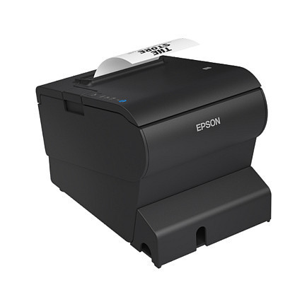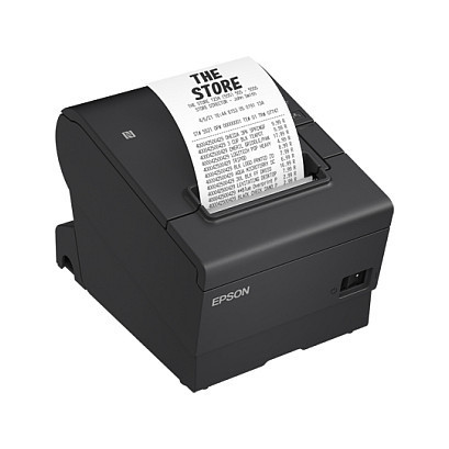 "Epson TM-T88VII (132). Print technology: Thermal, Type: POS printer, Maximum resolution: 180 x 180 DPI. Printing media thickness: 48 - 80 µm, Maximum roll diameter: 8.3 cm, Supported paper width: 80 mm. Connectivity technology: Wired & Wireless, USB connector: USB Type-A / USB Type-B, Optional connectivity: Wireless LAN. Sound pressure level (printing): 52 dB, Sound pressure level (standby): 52 dB, Mean time between failures (MTBF): 360000 h. Product colour: Black"\n"High-speed receipt printer