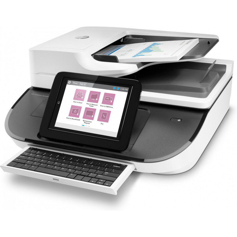 "HP Flow 8500 fn2. Scanner type: Flatbed & ADF scanner. Scan file formats: CSV, HTML, JPG, OCR, PDF, RTF, TIFF, TXT, XPS, Maximum duty cycle: 10000 pages per month, Internal memory: 3584 MB. Auto document feeder (ADF) input capacity: 150 sheets. Power supply type: AC, Power consumption (typical): 22 W, Power consumption (PowerSave): 1.2 W. Weight: 17.5 kg"\n"The fastest, most secure network scanner helps accelerate your business forward. Utilizing high-performance features for a more productive office.1,3