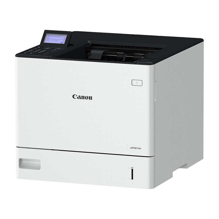 "Canon i-SENSYS LBP361dw. Print technology: Laser. Number of print cartridges: 1, Maximum duty cycle: 275000 pages per month. Maximum resolution: 1200 x 1200 DPI. Maximum ISO A-series paper size: A4. Print speed (black, normal quality, A4/US Letter): 61 ppm, Duplex printing. Display: LCD. Wi-Fi. Product colour: White"\n"Greater efficiency with high-speed, high-volume printing