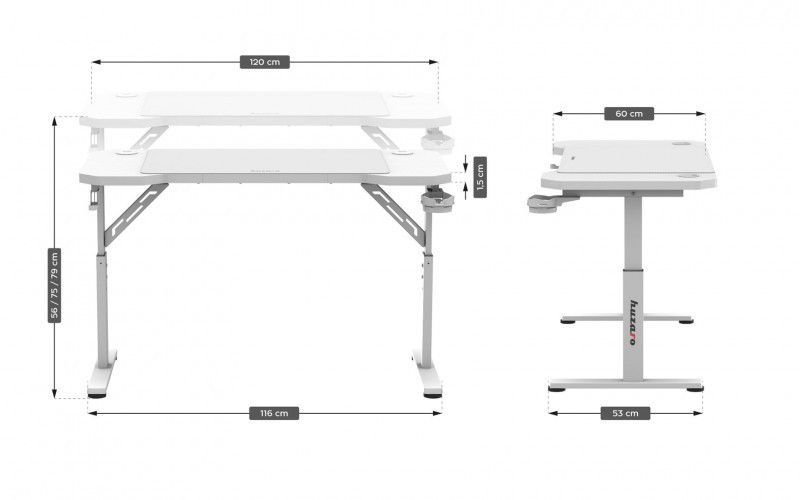 Huzaro Hero 2.6 White žaidimų stalas