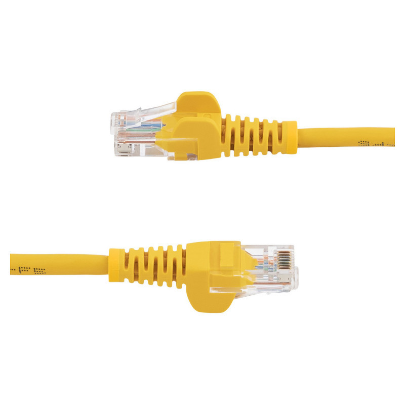 "StarTech.com Cat5e Ethernet Patch Cable with Snagless RJ45 Connectors - 0.5 m, Yellow. Cable length: 0.5 m, Cable standard: Cat5e, Cable shielding: U/UTP (UTP), Connector 1: RJ-45, Connector 2: RJ-45, Connector contacts plating: Gold, Data transfer rate: 100 Mbit/s, Product colour: Yellow"\n"Make Fast Ethernet connections with support for PoE