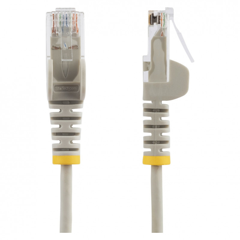 "StarTech.com 2 m CAT6 Cable - Slim - Snagless RJ45 Connectors - Grey. Cable length: 2 m, Cable standard: Cat6, Cable shielding: U/UTP (UTP), Connector 1: RJ-45, Connector 2: RJ-45, Connector contacts plating: Gold, Product colour: Grey"\n"This slim CAT6 cable meets all Category 6 patch cable specifications to deliver a reliable Gigabit network connection in high-density data center applications.