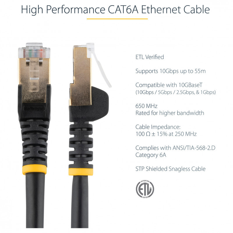 StarTech CAT6a Ethernet Cable - 2m - Black Network Cable - Snagless RJ45 Cable - Ethernet Cord - 2 m / 6 ft