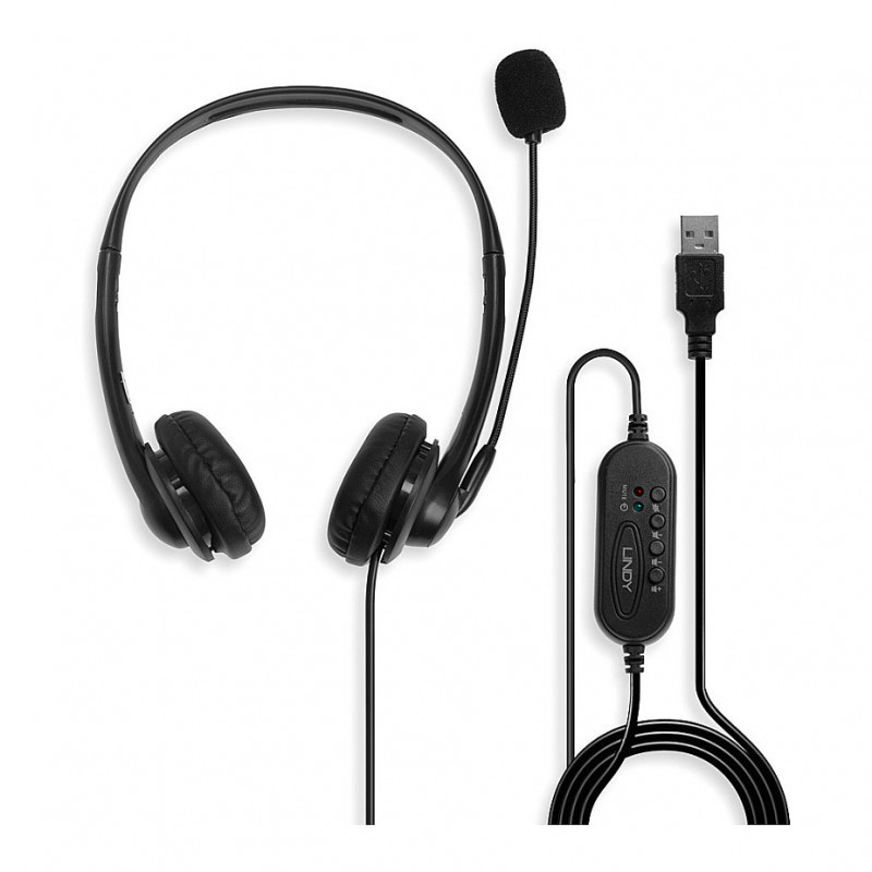 "Lindy USB Type A Wired Headset with In-Line Control. Product type: Headset. Connectivity technology: Wired. Recommended usage: Calls/Music. Headphone frequency: 20 - 20000 Hz. Cable length: 1.95 m. Weight: 108 g. Product colour: Black"\n"The Lindy USB Type A Wired Headset with In-Line Control is a professional headset for connectivity with PCs, laptops, or other USB outputs. The binaural design provides clear stereo audio playback, replacing in-built PC or laptop speakers.The flexible omni-directional microphone captures the users voice clearly for superior video calling clarity. The in-line controls ensure simple volume and muting adjustment, great for flexible use within video conferencing. The headset's lightweight design ensures comfort even with all-day use within offices and call centres and they can be also used in conjunction with popular VoIP and Office software."