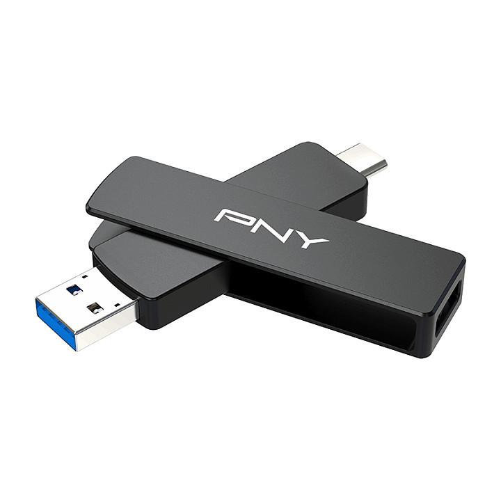 "PNY DUO LINK V3. Capacity: 2 TB, Device interface: USB Type-A / USB Type-C, USB version: 3.2 Gen 2 (3.1 Gen 2), Read speed: 1000 MB/s, Write speed: 800 MB/s. Form factor: Swivel, Product colour: Black"\n"PNY DUO LINK™ V3 Type-C® OTG USB 3.2 Gen 2 Flash Drive is the ultimate on-the-go storage solution for advanced tech users. Enjoy extreme performance up to 1000MB/s read and up to 800MB/s write. Dual Type-A & Type-C connectors maximize compatibility to seamlessly manage files across host devices on up to 2TBs of storage space. With a premium metal swivel design for durability & portability.