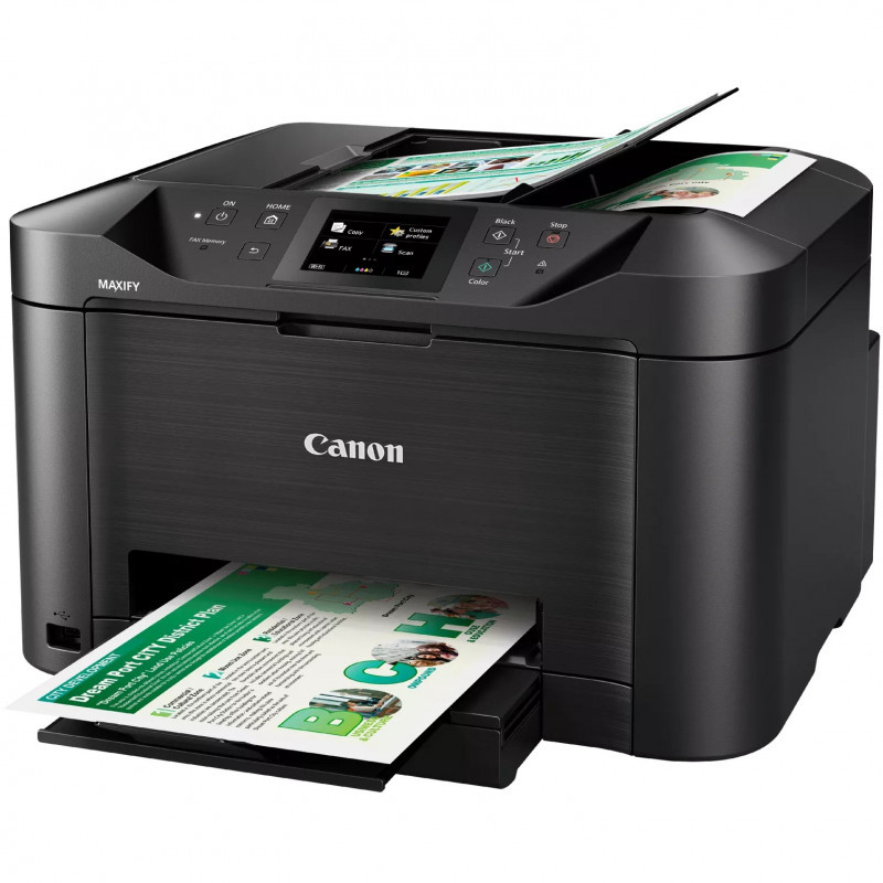 "Canon MAXIFY MB5150. Print technology: Inkjet, Printing: Colour printing, Maximum resolution: 60 x 1200 DPI, Print speed (colour, normal quality, A4/US Letter): 15.5 ppm. Copying: Colour copying. Scanning: Colour scanning, Optical scanning resolution: 1200 x 1200 DPI. Faxing: Colour faxing. Maximum ISO A-series paper size: A4. Wi-Fi. Product colour: Black"\n"A heavy-duty multifunction colour inkjet printer, scanner, copier and fax, with support for mobile devices and cloud services, fast 24 ipm mono print speed and easy network integration.