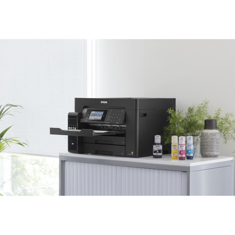 "Epson EcoTank ET-16650. Print technology: Inkjet, Printing: Colour printing, Maximum resolution: 4800 x 1200 DPI, Print speed (colour, normal quality, A4/US Letter): 32 ppm. Copying: Colour copying. Scanning: Colour scanning, Optical scanning resolution: 1200 x 2400 DPI. Faxing: Colour faxing. Maximum ISO A-series paper size: A3. Wi-Fi. Direct printing. Product colour: Black"\n"High performance printing