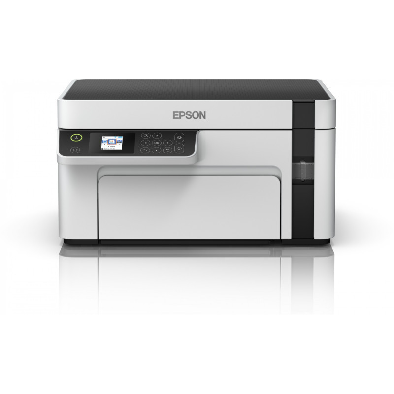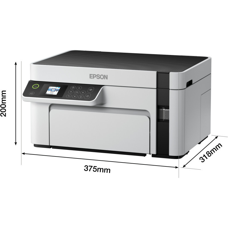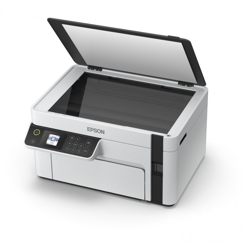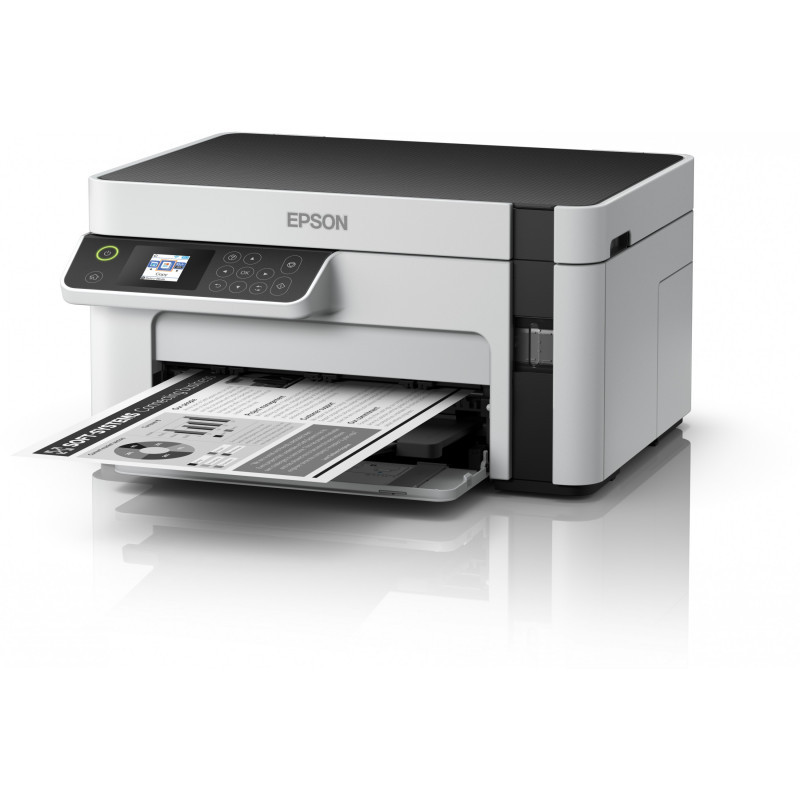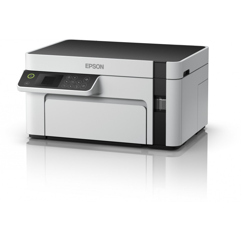 "Epson EcoTank ET-M2120. Print technology: Inkjet, Printing: Mono printing, Maximum resolution: 1440 x 720 DPI. Copying: Mono copying. Scanning: Mono scanning, Optical scanning resolution: 2400 x 1200 DPI. Maximum ISO A-series paper size: A4. Wi-Fi. Direct printing. Product colour: Black, White"\n