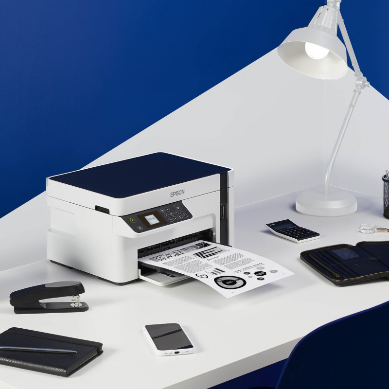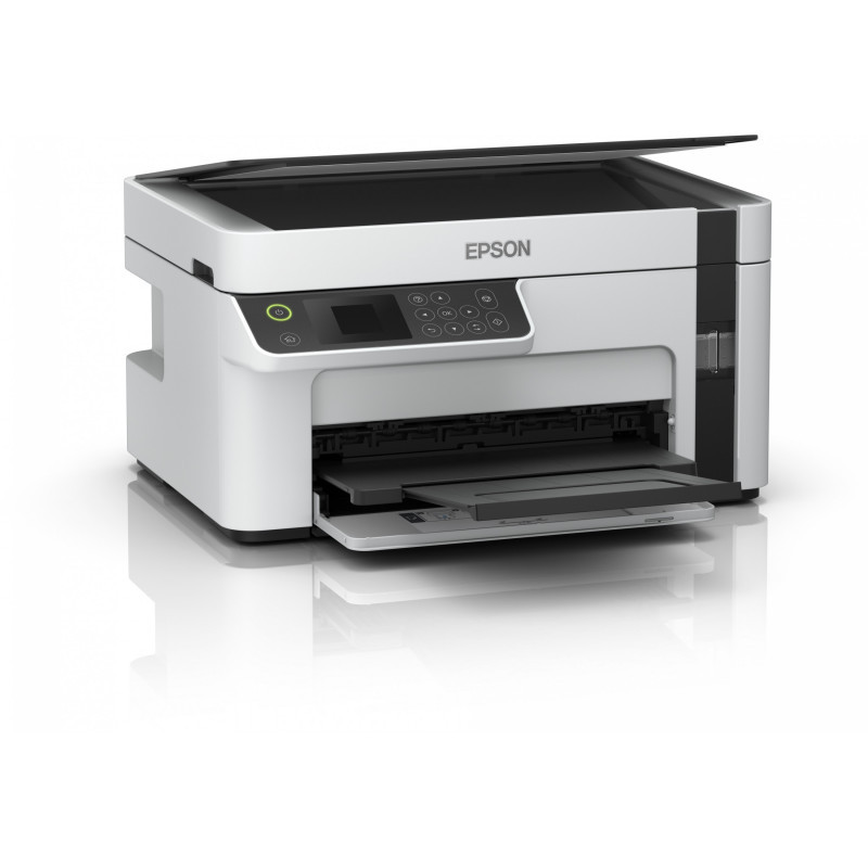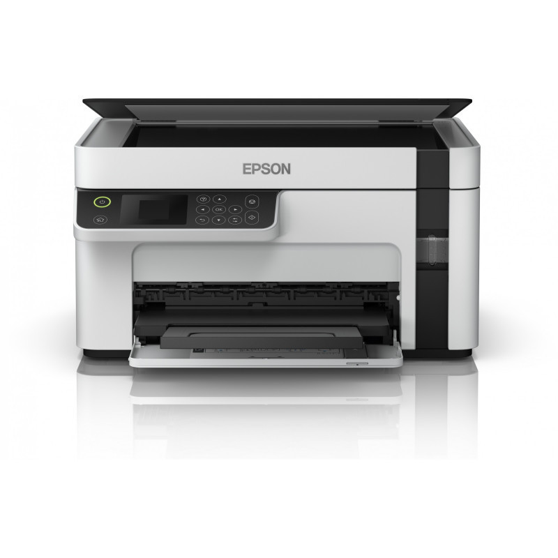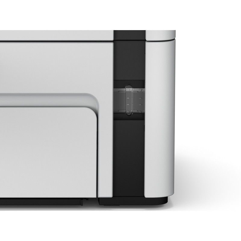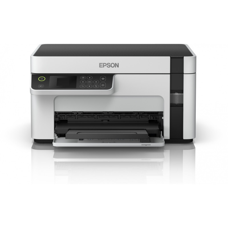 "Epson EcoTank ET-M2120. Print technology: Inkjet, Printing: Mono printing, Maximum resolution: 1440 x 720 DPI. Copying: Mono copying. Scanning: Mono scanning, Optical scanning resolution: 2400 x 1200 DPI. Maximum ISO A-series paper size: A4. Wi-Fi. Direct printing. Product colour: Black, White"\n