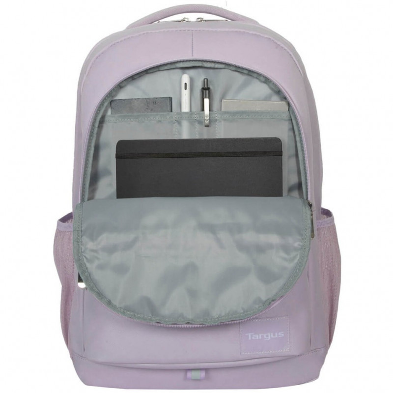 "Targus Octave III. Backpack type: City backpack, Product main colour: Purple, Style: City. Width: 374 mm, Depth: 70 mm, Height: 449 mm. Material: Polyester, Material details: 600d"\n"The Targus® 15–16” Octave III Backpack is a functional and lightweight pack with easy access pockets to stylishly carry the day’s essentials. It will protect your tech in its dedicated padded laptop pocket, while organising your gear in its built-in workstation. Two front pockets make it easy to stash your on-the-go items like your phone, wallet, or charger, and you can keep your water or drinks handy in its two side water bottle pockets.