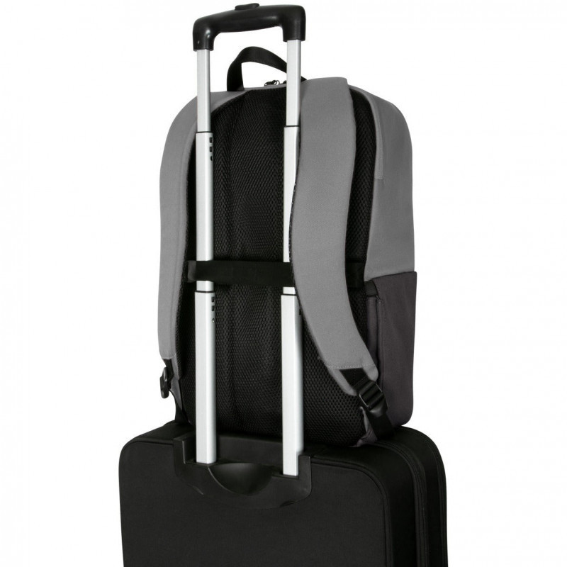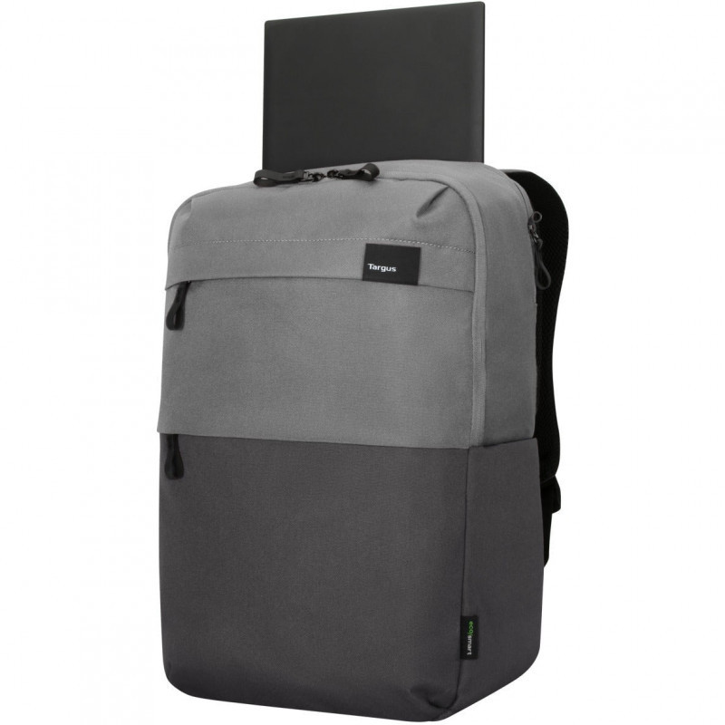 "Targus Sagano. Case type: Backpack, Maximum screen size: 39.6 cm (15.6""), Number of front pockets: 2, Carrying handle(s), Combination locks. Weight: 770 g. Surface coloration: Monochromatic"\n"Made from recycled materials, the eco-friendly Sagano™ EcoSmart® Travel Backpack was created to carry 15.6” laptops and other essential gear with style and ease - whether you’re catching a flight or a bike ride to campus. Offering multiple pockets and a contemporary profile, this bag is equipped with safety features like the SafePort® Sling Protection System to secure your laptop from the inside, while the RFID-blocking pocket helps keep your information safe from the outside.