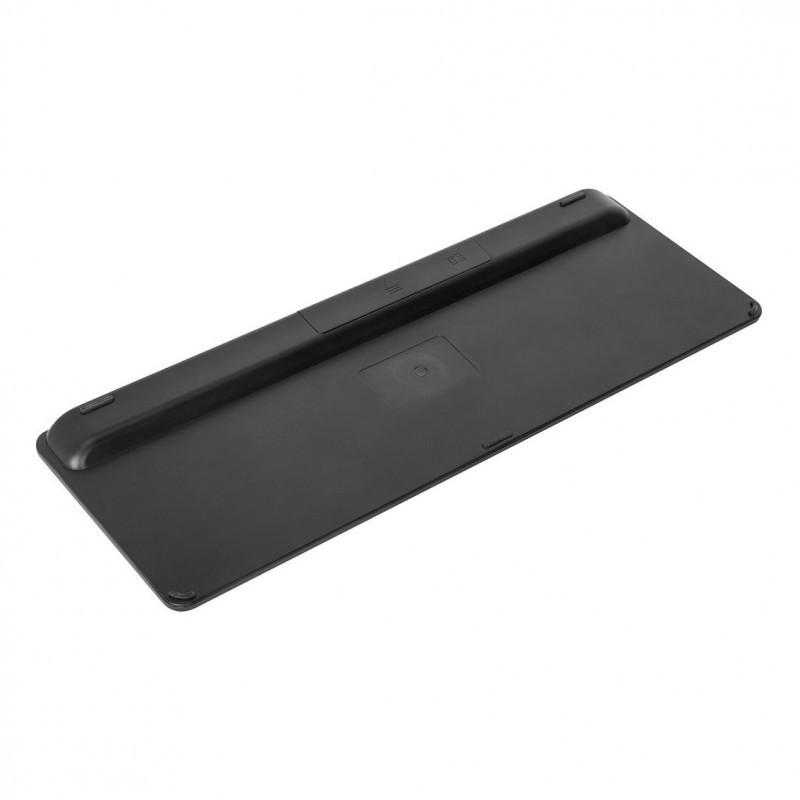 "Targus AKB863DE. Keyboard form factor: Full-size (100%), Connectivity technology: Wireless, Device interface: Bluetooth, Keyboard layout: QWERTZ, Recommended usage: Universal. Product colour: Black"\n"Targus Universal Bluetooth UK-layout Keyboard infused with Antimicrobial Protection. Offering universal compatibility, it pairs and stores up to 3 devices in its memory.