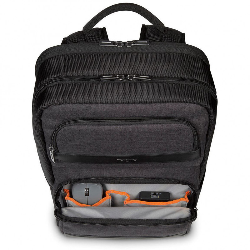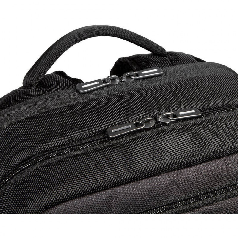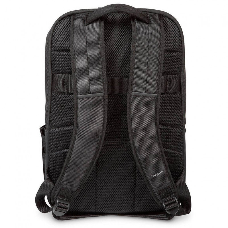 "Targus CitySmart. Backpack type: Casual backpack, Product main colour: Black, Grey, Style: Urban. Width: 370 mm, Depth: 190 mm, Height: 470 mm. Material: Faux leather, Polyurethane (PU)"\n"Blending on the go functionality with urban styling the City Smart range is full of minimalist cool. Featuring an innovative Multi-Fit cradle in the padded laptop compartment, which can securely accommodate a range of different sized hardware, this backpack offers protection for laptops between 12.5 and 15.6” with a reassuringly snug fit. The Advanced backpack has been designed to fit your laptop and your life, including dedicated pockets and compartments for your belongings and accessories. Padded shoulder straps and ventilated back padding ensure comfort even when carrying a heavy load."