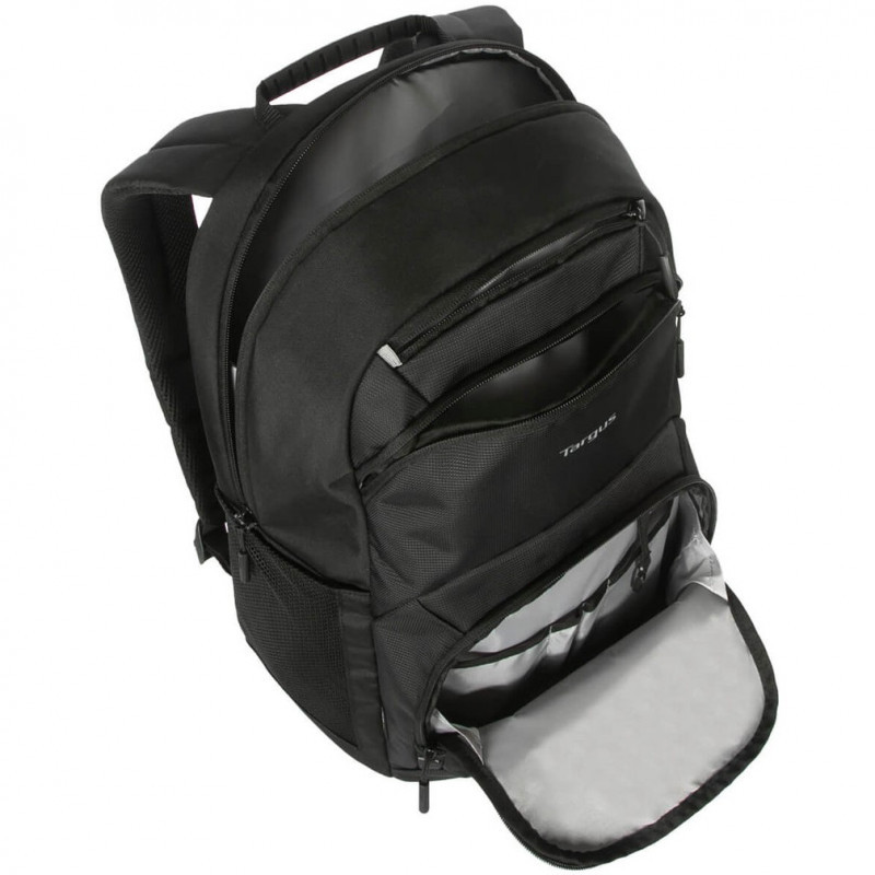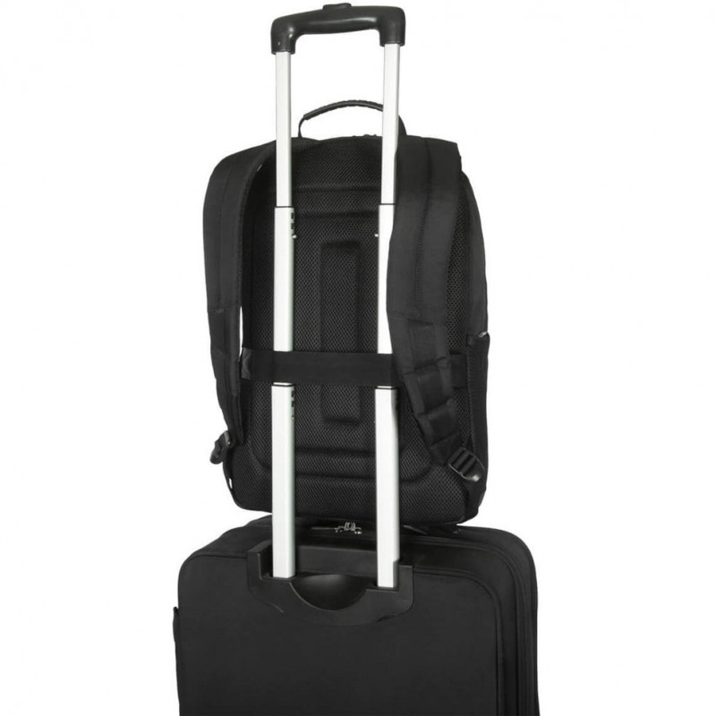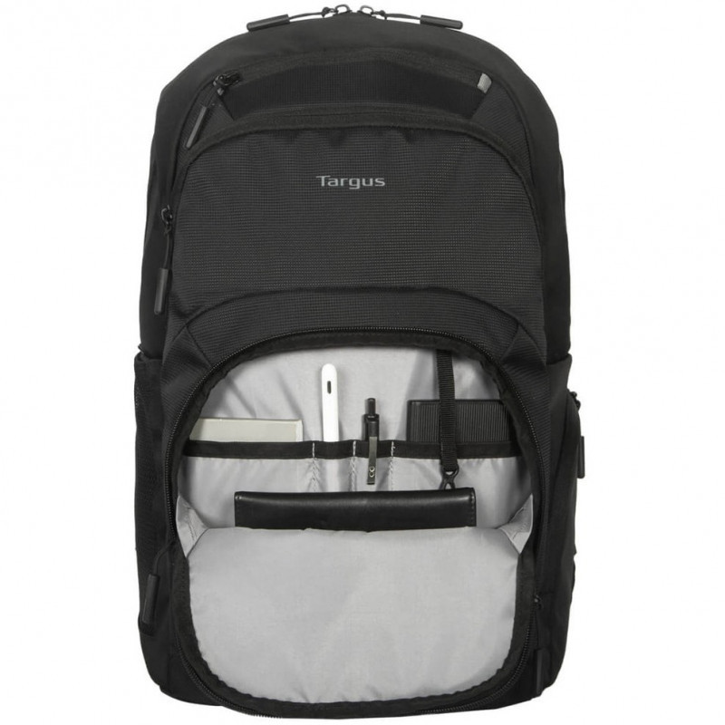 Equipped with up-to-date features, this backpack enhances accessibility with three-tiered zippered front pockets and a trolley strap for convenient travel. For a comfortable carrying experience, it includes adjustable contoured shoulder straps, a reinforced top handle, and a breathable back panel to help keep you cool. All these features are paired with Targus's expected level of laptop protection, making it perfect for everyday use.