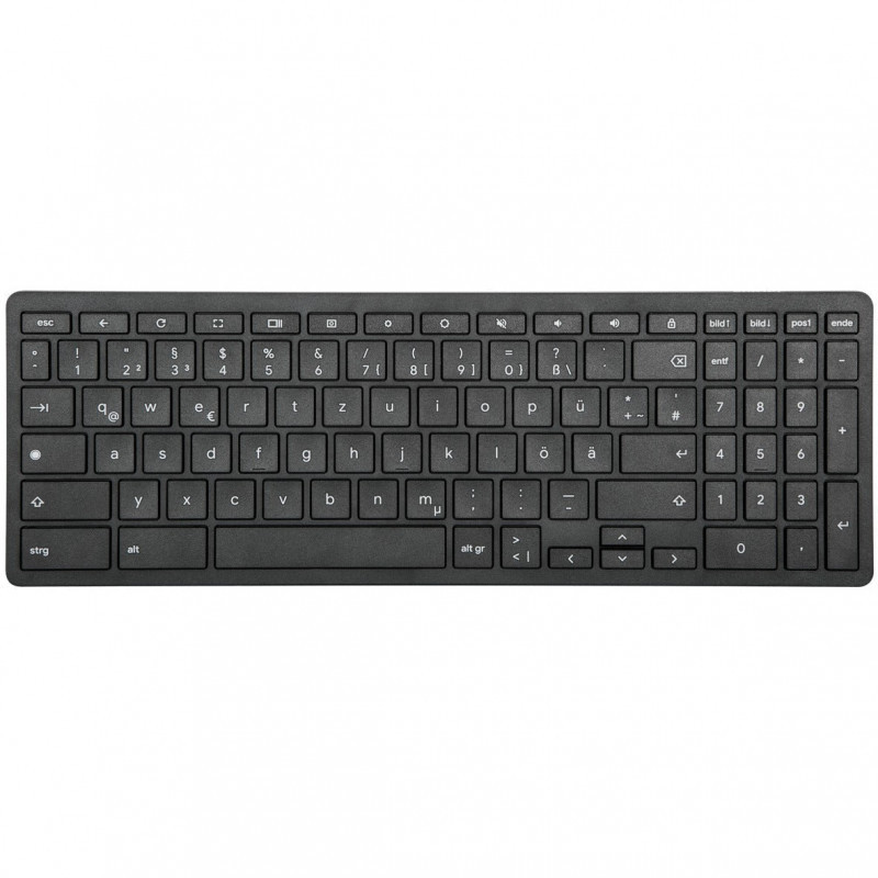 "Targus Keyboards. Keyboard form factor: Full-size (100%). Keyboard style: Straight. Connectivity technology: Wireless, Device interface: Bluetooth, Keyboard layout: QWERTZ, Recommended usage: Home. Product colour: Black"\n"Work from anywhere with the Targus Works With Chromebook Bluetooth Antimicrobial Keyboard. This slimline keyboard has a lightweight design for easy carrying alongside your Chromebook laptop and other workspace essentials. No need to worry about tangled wires or connection disruptions, this keyboard uses reliable and power-saving Bluetooth Low Energy 5.2 wireless technology. Plus, it was engineered for ChromeOS compatibility so you can work seamlessly with your Chromebook.