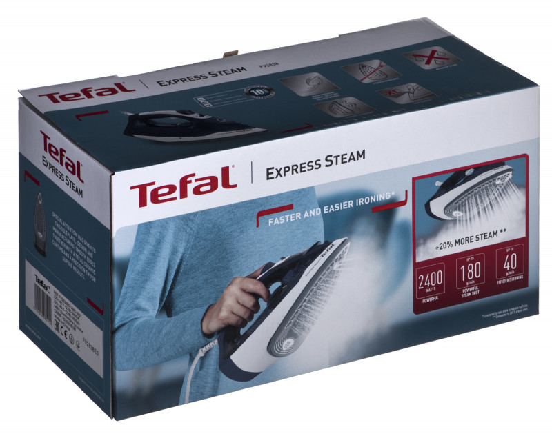 Tefal FV2838 Sauso ir garų tipo lygintuvas „Cerilium“ pagrindo plokštė 2400 W Mėlyna, Balta