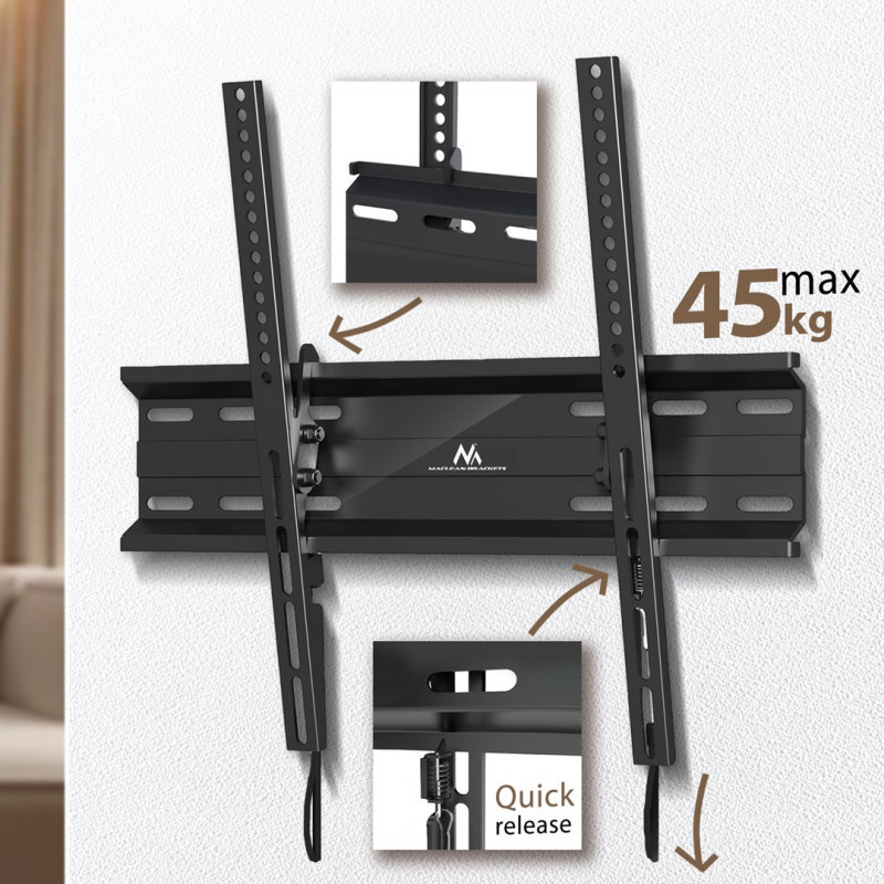 Maclean televizoriaus arba monitoriaus laikiklis, maks. VESA 400x400, 32–70 colių, 45 kg, juodas, MC-748A