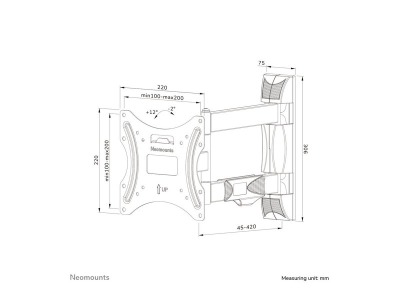 Neomounts Wall mount | WL40-550BL12 | Full motion, Tilt, Swivel | 32-55 " | Maximum weight (capacity) 35 kg | Black