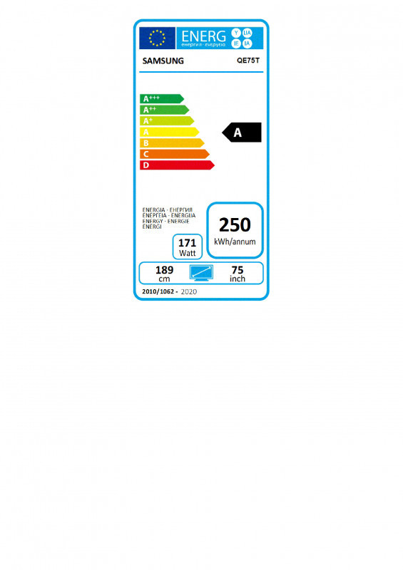 "Samsung QE75T. Product design: Digital signage flat panel. Display diagonal: 190.5 cm (75""), Display technology: LCD, Display resolution: 3840 x 2160 pixels, Display brightness: 300 cd/m², HD type: 4K Ultra HD. Operating system installed: Tizen 4.0. Product colour: Black"\n"Upgrade your business with efficient digital displays