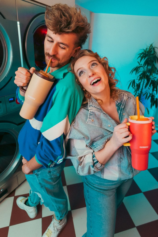 Termo puodelis su teleskopiniu šiaudeliu Kambukka Rio Tumbler 950ml Almond Dream