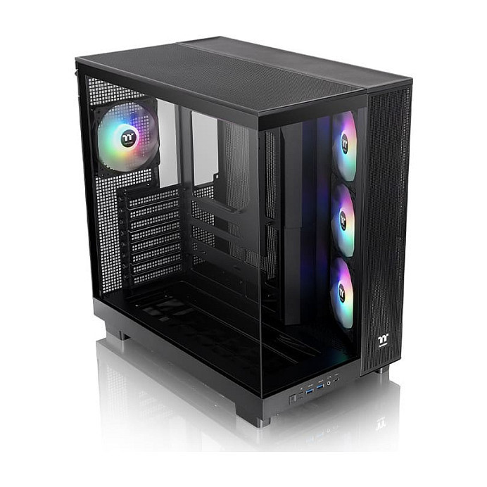 "Thermaltake View 380 XL TG ARGB. Form factor: Midi Tower, Type: PC, Product colour: Black. Supported power supply form factors: PS2. Side fans installed: 3x 120 mm, Side fans diameters supported: 120 mm, Rear fans installed: 1x 120 mm. Supported HDD sizes: 3.5"", SSD form factor: 2.5"". Width: 288 mm, Depth: 469 mm, Height: 471 mm"\n"View 380 XL TG ARGB Mid Tower Chassis