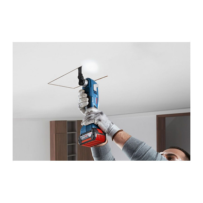 "Bosch GOP 18V-34 Professional. Idle speed: 20000 RPM, Oscillation angle: 1.7°, Product colour: Blue. Battery voltage: 18 V. Weight: 1.2 kg, Length: 279 mm, Height: 91 mm. Country of origin: Germany"\n