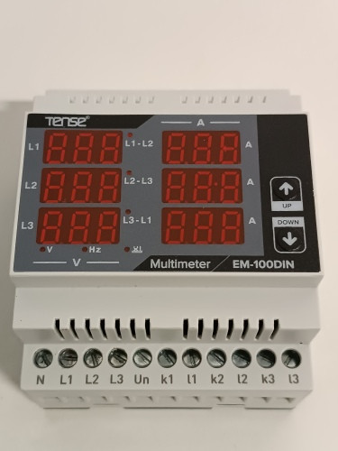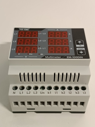 Ecost prekė po grąžinimo Įtemptas Elektronik EM100Din skaitmeninis multimetras, skirtas išmatuoti srovę (1A100A), įtampą ir dažnį 3 fazių tinkluose, DIN bėgeliui ar viršutinės skrybėlės bėgiui