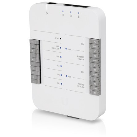 "Ubiquiti Access Hub. Ethernet LAN data rates: 1000 Mbit/s. DC voltage range: 12 - 30 V. Width: 190 mm, Depth: 126 mm, Height: 33 mm"\n"UniFi® Access Hub is an intelligent IP networked single door controller, a part of UniFi Access solution.