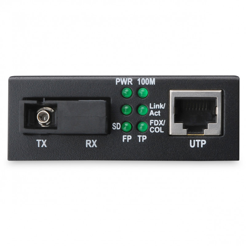 "Digitus Bidirectional Gigabit Media Converter, RJ45 / SC. Maximum data transfer rate: 1000 Mbit/s, Converter input interface: 10Base-T, 100Base-TX, 1000Base-TX, Converter output interface: 1000Base-LX. Maximum transfer distance: 20000 m, Wavelength: 1550 nm, Fiber mode structure: Single-mode. LED indicators: Link, Power, Status, Product colour: Black. Fiber optic connector: SC, Connectivity technology: Wired. Output voltage: 5 V, Output current: 0.8 A, Power consumption (typical): 2.5 W"\n"The perfect converter solution for various fiber media