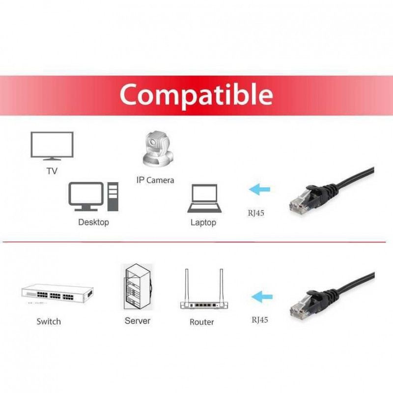 "Equip Cat.6 U/UTP Patch Cable, 7.5m, Black. Cable length: 7.5 m, Cable standard: Cat6, Cable shielding: U/UTP (UTP), Connector 1: RJ-45, Connector 2: RJ-45, Connector contacts plating: Gold, Data transfer rate: 10000 Mbit/s, Product colour: Black"\n"The equip® Cat.6 U/UTP Patch Cable is composed of preeminent materials and fully-examined to conform with industrial standards. Offering higher bandwidth and better signal-to-noise margin, the Cat.6 cable is able to deliver ultrahigh and error-free performance in the most demanding network environments."