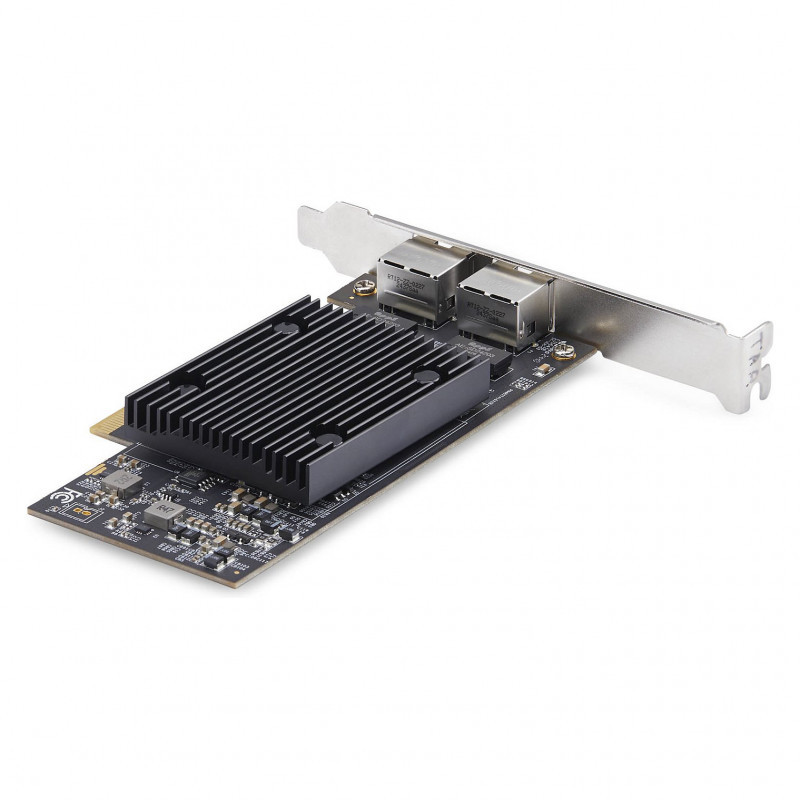 "StarTech.com 2-Port PCIe 10Gb Ethernet Network Card, 10GbE Network Interface Card, Broadcom BCM57416 Chipset, Dual RJ45 10GBase-T/Gigabit, NIC Card, TAA. Internal. Connectivity technology: Wired, Host interface: PCI Express, Interface: Ethernet. Maximum data transfer rate: 20000 Mbit/s. Product colour: Black"\n"Add two 10 Gigabit Ethernet ports to a PC via copper cable using an available PCIe slot.