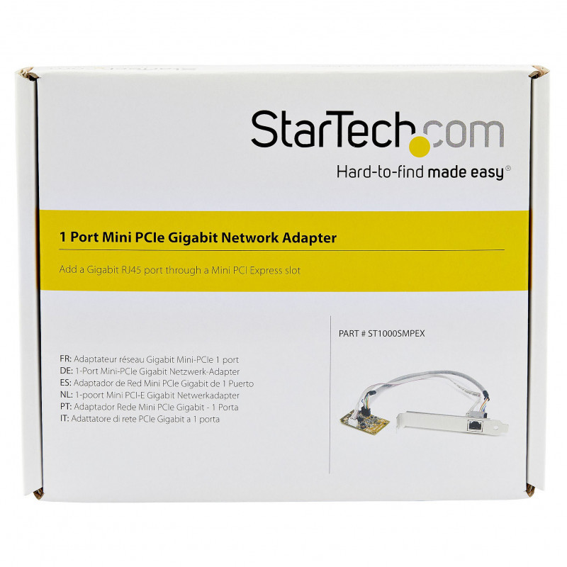 "StarTech.com Mini PCI Express Gigabit Ethernet Network Adapter NIC Card. Internal. Connectivity technology: Wired, Host interface: Mini PCI Express, Interface: Ethernet. Maximum data transfer rate: 1000 Mbit/s"\n"The ST1000SMPEX Mini PCI Express Gigabit Network Adapter Card adds 1000Mbps network connectivity to a Mini PCI Express (PCI Express Mini Card, Mini PCIe) enabled computer system, such as Mini-ITX motherboards.