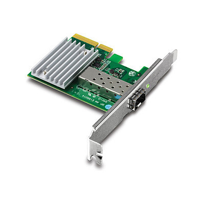 "Trendnet TEG-10GECSFP. Internal. Connectivity technology: Wired, Host interface: PCI Express, Interface: Fiber. Maximum data transfer rate: 10000 Mbit/s. Product colour: Green, Silver"\n"TRENDnet’s 10 Gigabit PCIe SFP+ Network Adapter, model TEG-10GECSFP, converts a free PCI Express slot into a 10 Gigabit SFP+ slot. Advanced features include jumbo frame and VLAN tagging support. The included standard and low profile brackets are compatible with Windows® and Linux® desktop computer designs.