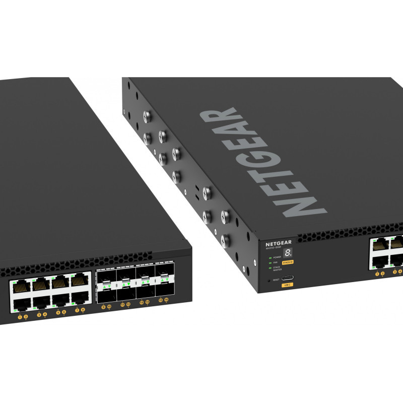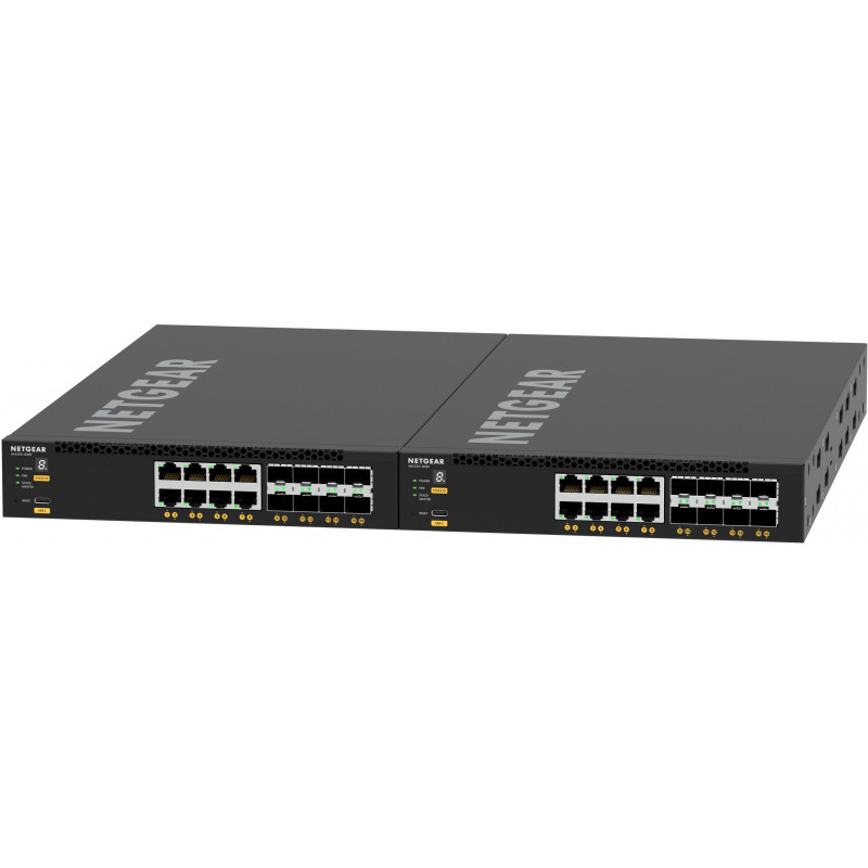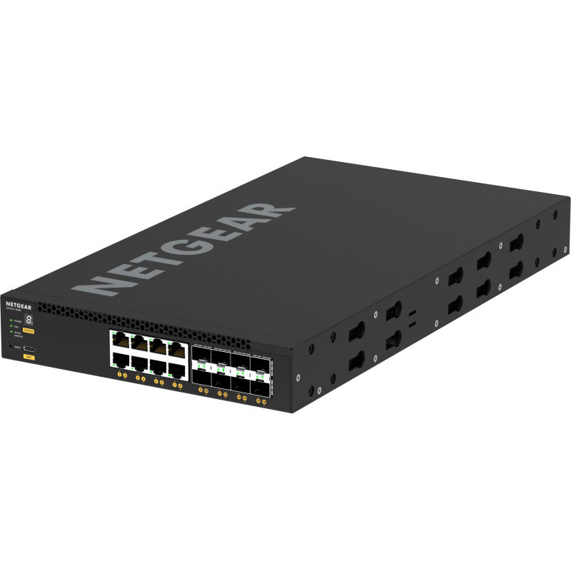 "NETGEAR M4350-8X8F. Switch type: Managed, Switch layer: L3. Basic switching RJ-45 Ethernet ports type: 10G Ethernet (100/1000/10000), Basic switching RJ-45 Ethernet ports quantity: 8. Full duplex. MAC address table: 16000 entries, Switching capacity: 320 Gbit/s. Networking standards: IEEE 802.1D, IEEE 802.1Q, IEEE 802.1Qav, IEEE 802.1s, IEEE 802.1w, IEEE 802.1x, IEEE 802.3, IEEE.... Power connector: AC-in jack. Rack mounting, Form factor: 1U"\n"POWER AND THROUGHPUT