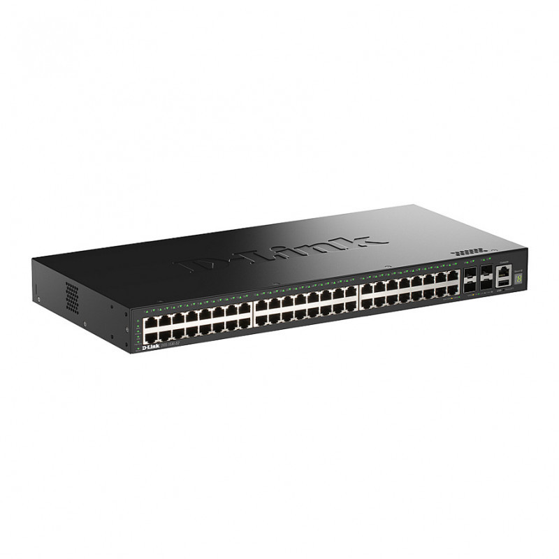 "D-Link 52-Port Gigabit Stackable Smart Managed Switch with 4 x 10G SFP+ Ports. Switch type: Managed, Switch layer: L2. Basic switching RJ-45 Ethernet ports type: Gigabit Ethernet (10/100/1000), Basic switching RJ-45 Ethernet ports quantity: 48, USB 2.0 ports quantity: 1, Console port: RJ-45. Full duplex. MAC address table: 16000 entries, Switching capacity: 176 Gbit/s. Networking standards: IEEE 802.3, IEEE 802.3ab, IEEE 802.3ae, IEEE 802.3u, IEEE 802.3x. Rack mounting"\n"The DGS-1530 Series are part of the Layer 2 family of D-Link’s Stackable Smart Switch product line that provides wired Gigabit speeds for Metro Ethernet and campus networks. They feature a variety of ports, including 10/100/1000BASE-T RJ-45 ports, 1G SFP ports, and 10G SFP+ ports for increased network bandwidth. Surge protection, advanced Layer 2 functions, and a suite of security and management tools make the DGS-1530 Series Stackable Smart Switch ideal for Metro Ethernet and campus applications.