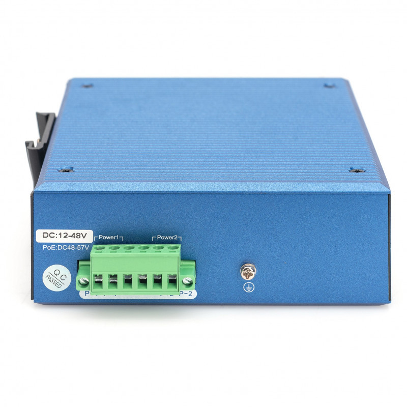"Digitus Industrial 8 + 4-port Gigabit Ethernet switch. Switch type: Unmanaged. Basic switching RJ-45 Ethernet ports type: Gigabit Ethernet (10/100/1000), Basic switching RJ-45 Ethernet ports quantity: 8, Installed SFP modules quantity: 2, Installed SFP+ modules quantity: 2. Full duplex. MAC address table: 8000 entries, Switching capacity: 1 Gbit/s. Networking standards: IEEE 802.3x. DC input voltage: 12 - 48 V"\n"8x 10/100/1000 BASE-TX RJ45 + 4 x 1000Base-Fx ports. The IP40 enclosure with redundant power supply is ideal for monitoring, control management and wireless services at -40℃ to 80℃.