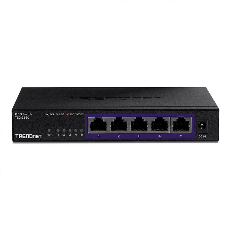 "Trendnet TEG-S350. Switch type: Unmanaged. Basic switching RJ-45 Ethernet ports type: Gigabit Ethernet (10/100/1000), Basic switching RJ-45 Ethernet ports quantity: 5. Full duplex. MAC address table: 16000 entries, Switching capacity: 25000 Gbit/s. Networking standards: IEEE 802.3, IEEE 802.3ab, IEEE 802.3az, IEEE 802.3bz, IEEE 802.3u, IEEE 802.3x, IEEE 802.3z. DC input voltage: 12 V. Wall mountable"\n"5-Port Unmanaged 2.5G Switch